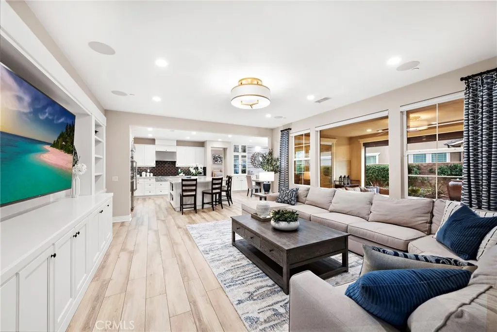 Welcome to 15 Vagar Street, an exquisite single-story residence in the vibrant 55+ community of Rancho Mission Viejo. Spanning 2,121 sq ft this home is thoughtfully appointed with designer-curated details/lighting as well as thoughtful upgrades including custom barn doors, custom closet organizers in both bedrooms, curated wall coverings, beautiful lighting and chandeliers, plantation shutters, and custom cabinetry-offering a seamless blend of modern elegance and comfort. Step inside to discover an open layout featuring two spacious bedrooms with luxurious ensuite bathrooms plus an oversized office/den with built-in desk for two and a powder bathroom all grounded by the great room at the heart of the home. The entire home is adorned with custom wall coverings and LVP floors throughout creating a cohesive and stylish environment. This exceptional floorplan with the great room leading to the oversized kitchen island with seating for four and adjacent to the dining room with plenty of room for a large table for entertaining. Thoughtfully designed gourmet kitchen is a chef's dream, equipped with GE Monogram appliances, including a 6-burner stove and a 42" built-in refrigerator, white cabinets with soft close, limestone quartz countertops and a dream pantry. The outdoor room is a true retreat, complete with a media wall with gas fireplace and a motorized sun shade screen, perfect for enjoying year round. Paver patio includes a dining area with steel patio cover, tranquil bubbling fountain, and wrap around turf side yard. Coveted corner lot with the pocket park as the side neighbor means a cool breezes and beautiful hills and sunset views abound from the yard and the primary bedroom windows. Every detail has been well thought out to create a stunning yet functional home with ample storage including a walk in pantry, numerous cabinets in the laundry room, the built-in desk and professionally built-in organizers in walk-in closets in both bedrooms. Additionally the 2 car garage is equipped with an electric car charger, epoxy flooring and overhead storage racks. Experience the perfect blend of style and beauty at 15 Vagar Street while enjoying access to all of the resort style amenities and clubs the 55+ lifestyle affords. Welcome Home!
